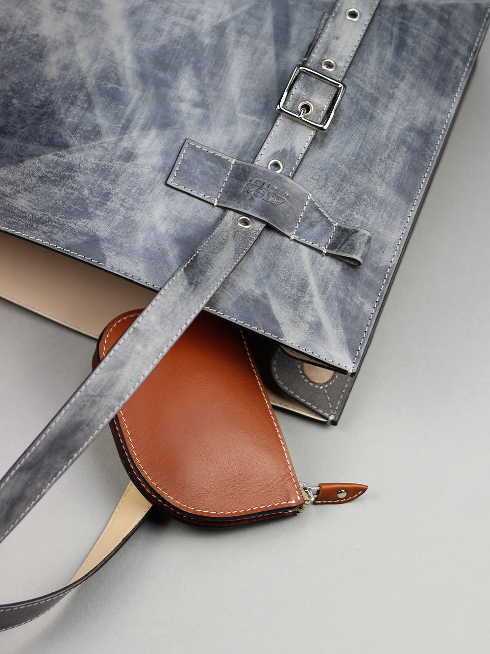 Made in our workshop from bovine leather, it features three compartments and leather lining.